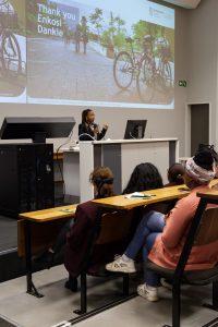 Ms. Khanyiswa Xinwa, Student Support Coordinator, emphasised that her office was there to serve the needs of the students in the challenges they might experience, as being a student is a challenging but also an exciting commitment. The students should not hesitate to contact her office.