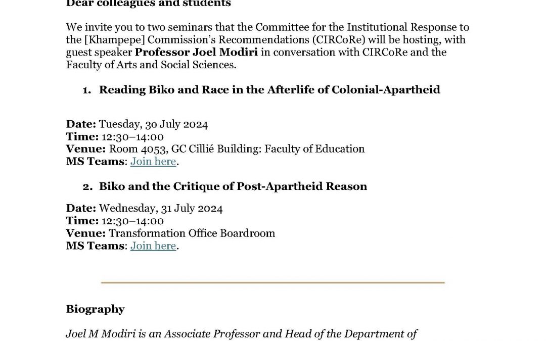 the [Khampepe] Commission’s Recommendations (CIRCoRe) will be hosting, with